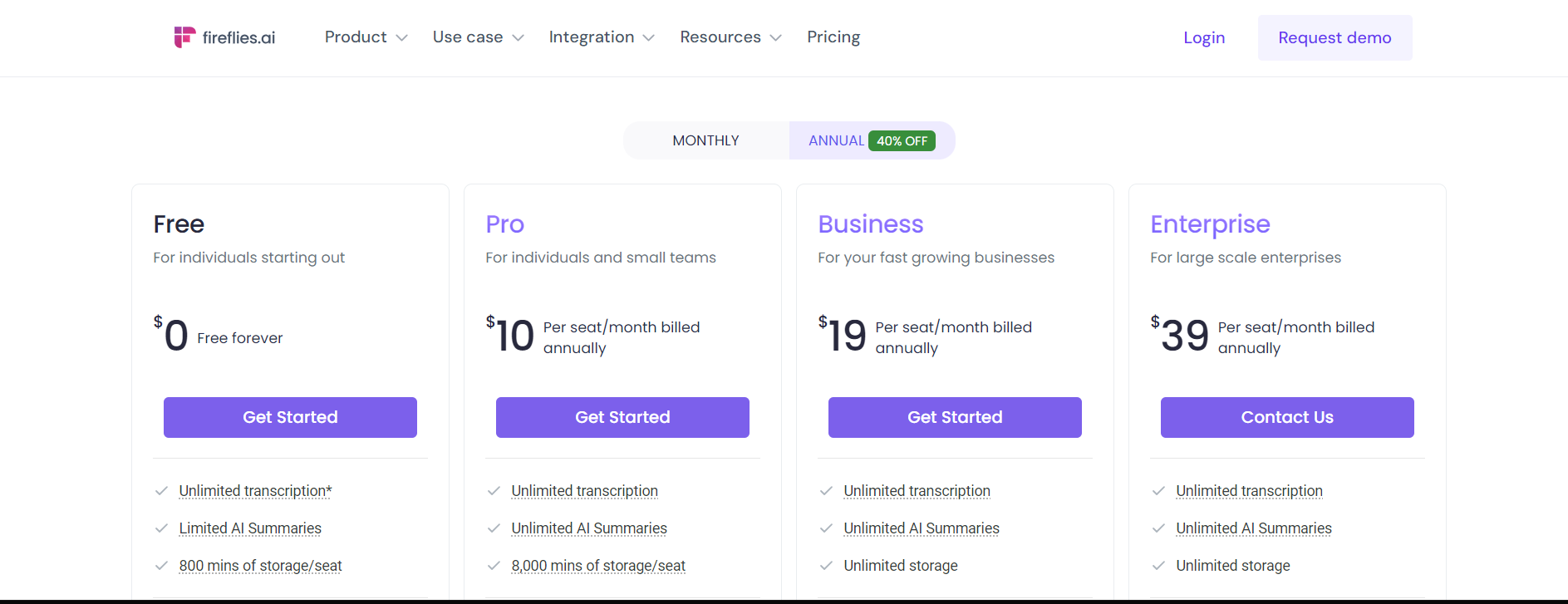 Fireflies AI presents several pricing tiers, accommodating a wide range of needs:
