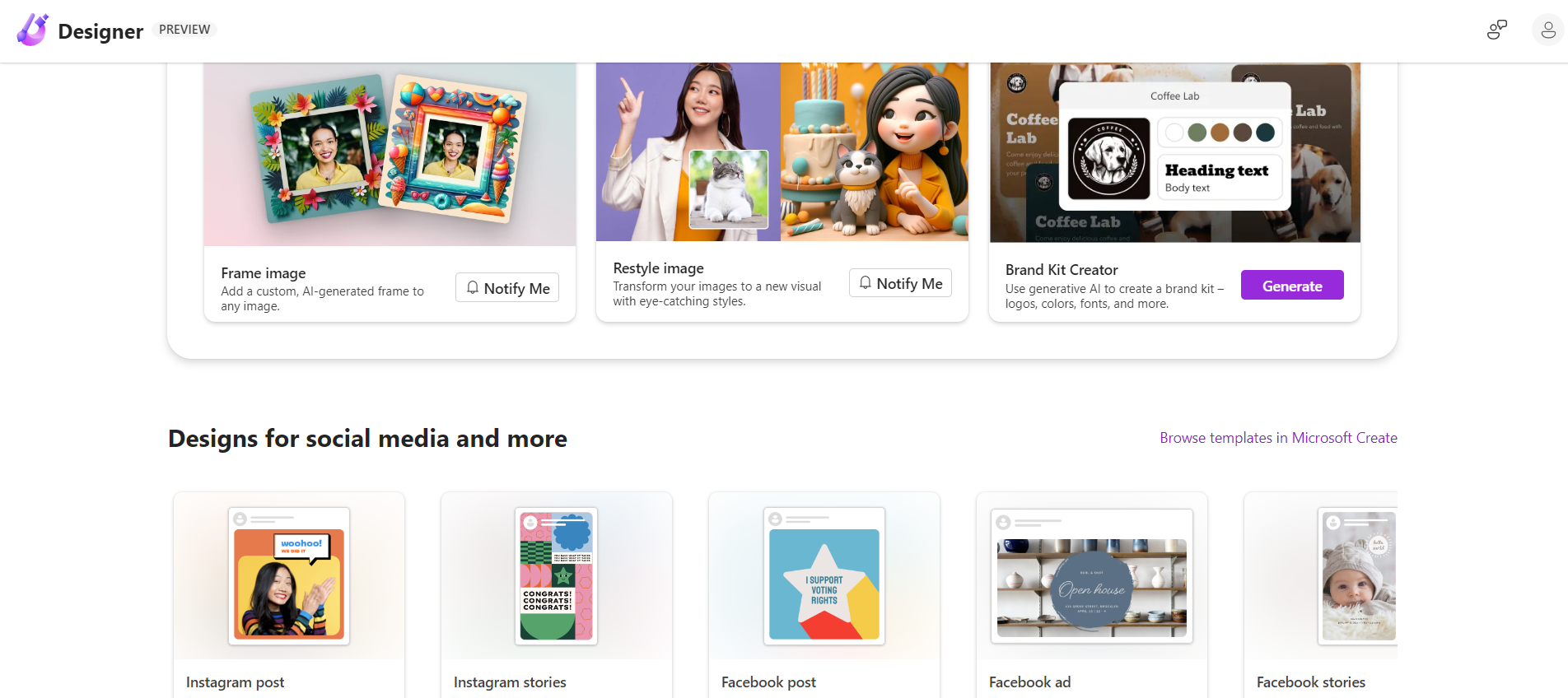 The platform includes a robust set of tools that cater to diverse design needs. Microsoft Designer offers AI-enhanced image creation, sophisticated data visualization capabilities, and an array of customizable templates and editing tools. These features are designed to optimize your design process, whether you're starting from scratch or modifying an existing project.